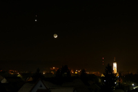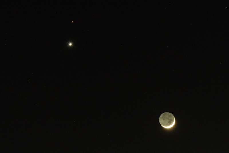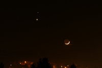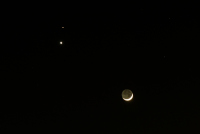 Enge Begegnung von Venus und Mars mit der zunehmenden Mondsichel