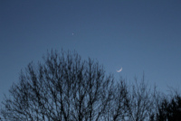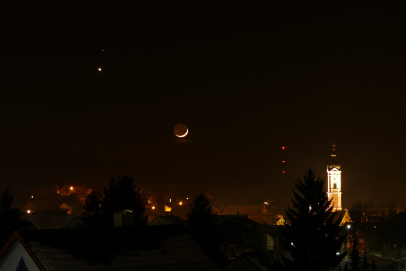 Venus und die schmale Mondsichel im Keltendorf Oberhofen