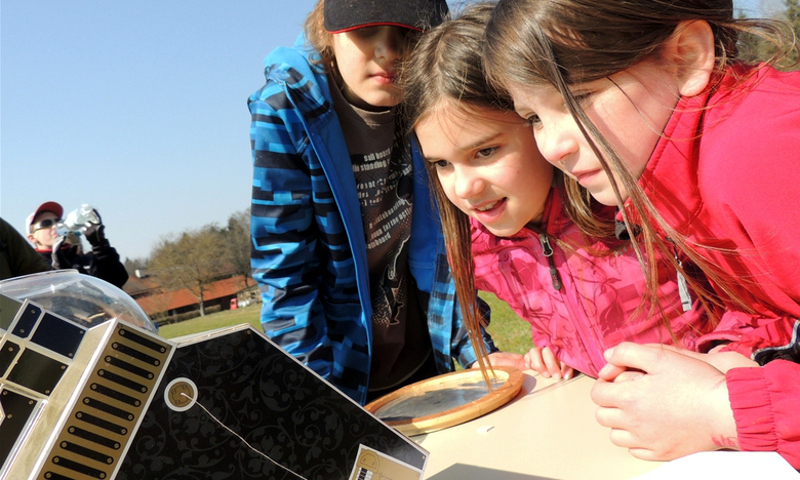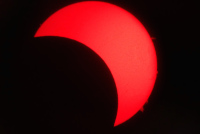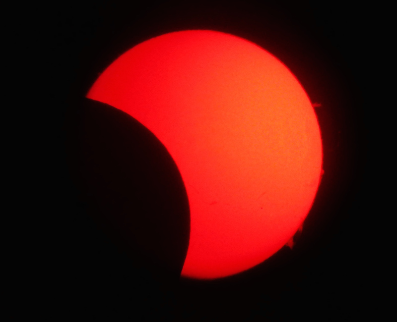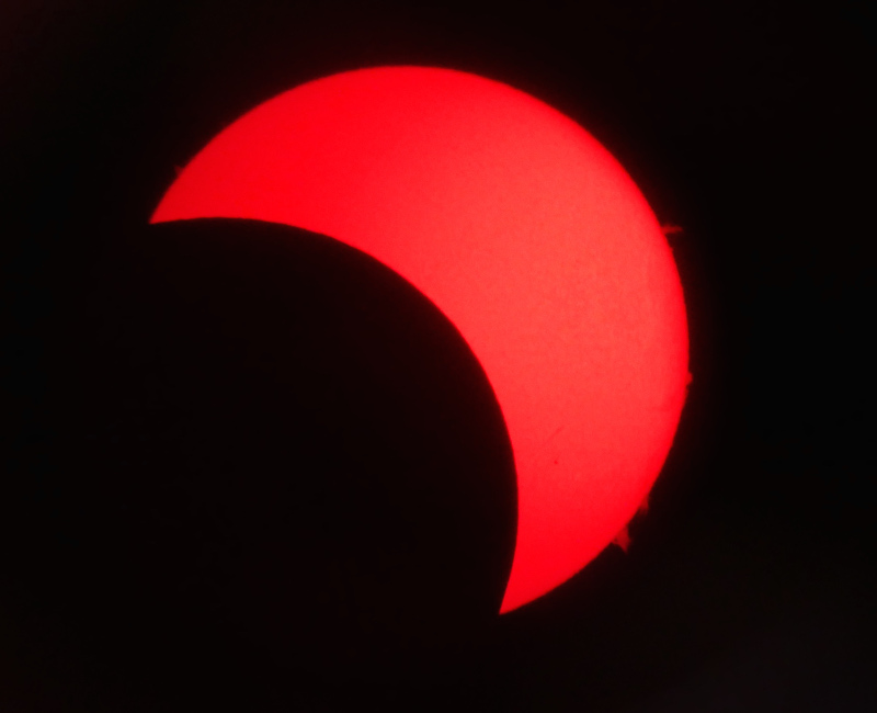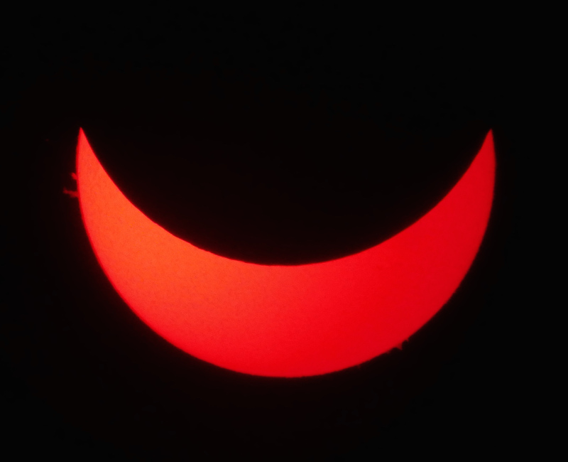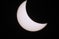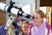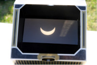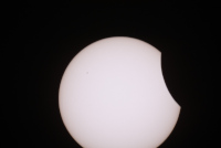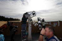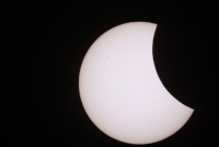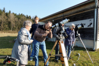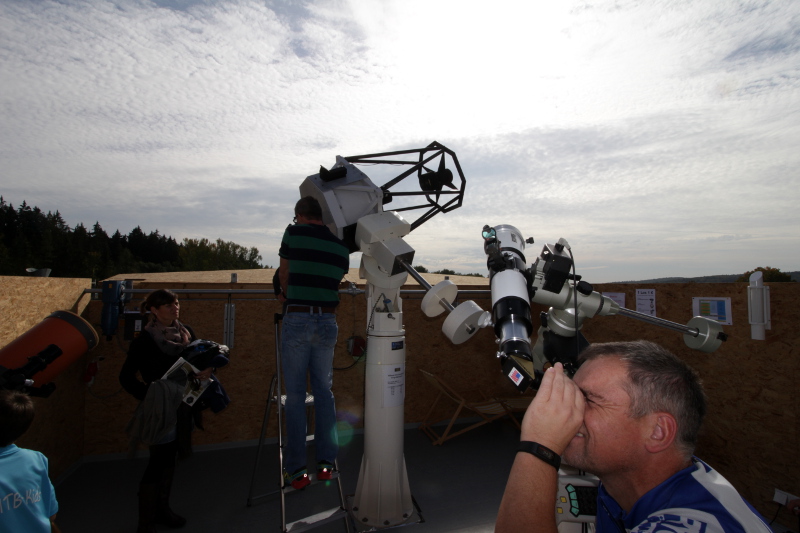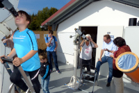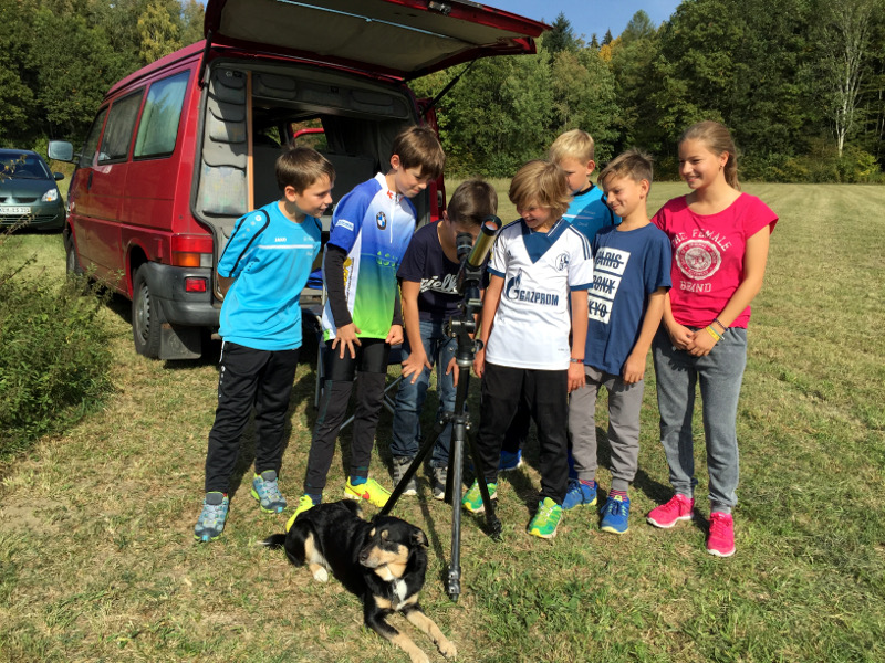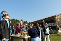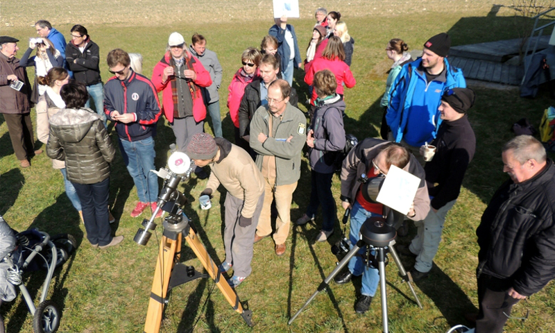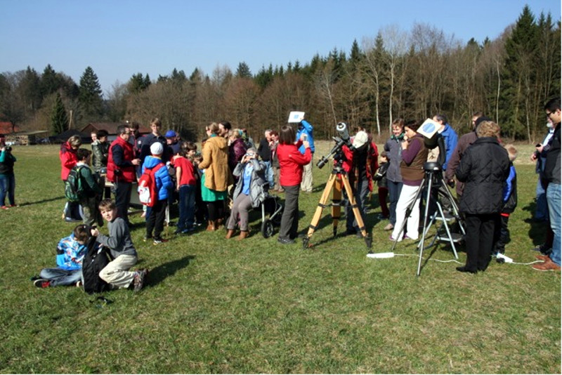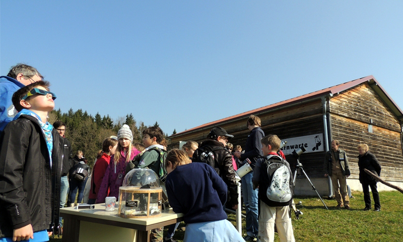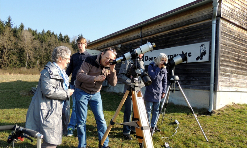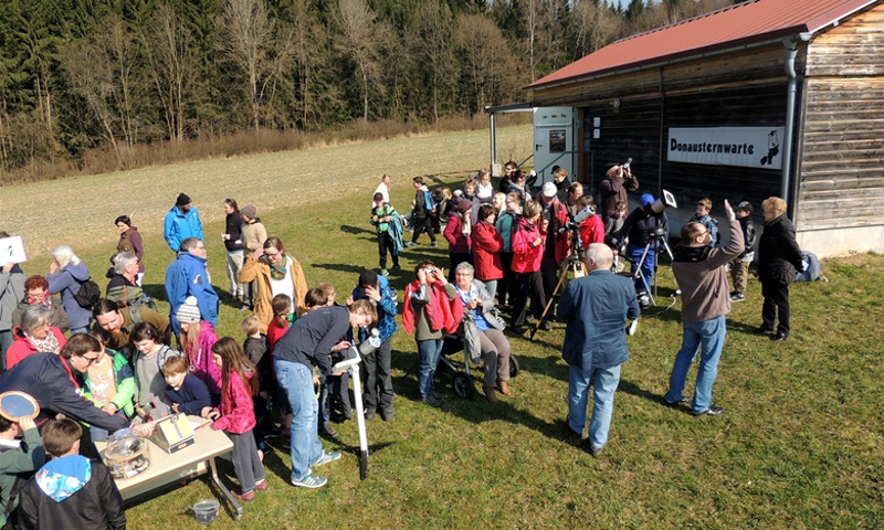 Mehr als 70 Besucher, darunter auch eine Klasse der Montessori-Schule in Essing, haben sich während der gesamten Beobachtungsdauer bei herrlichstem Wetter auf der Donausternwarte eingefunden. Mit verschiedenen Teleskopen und Spezialfiltern konnte das beeindruckende Ereignis gefahrlos beobachtet werden.