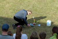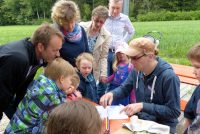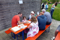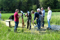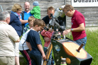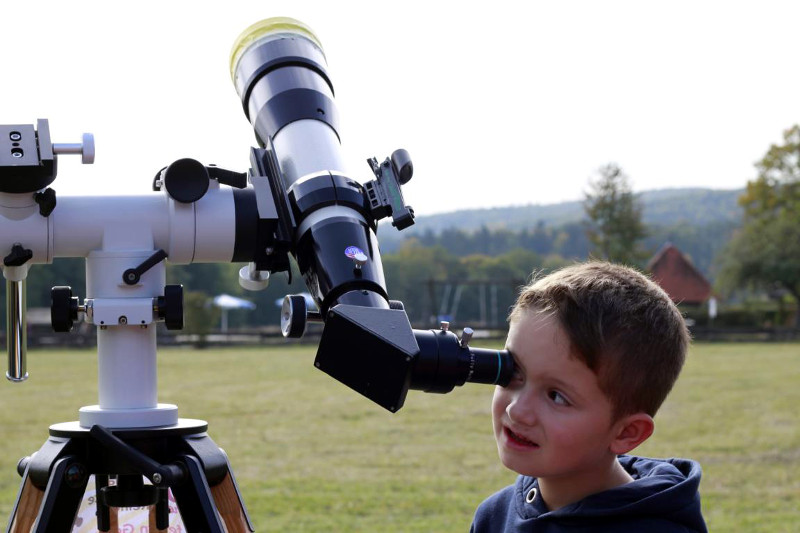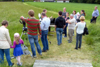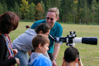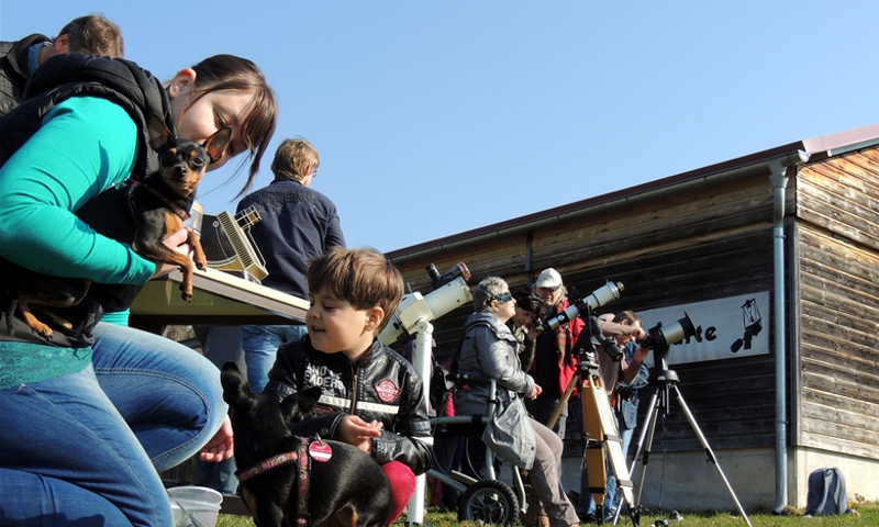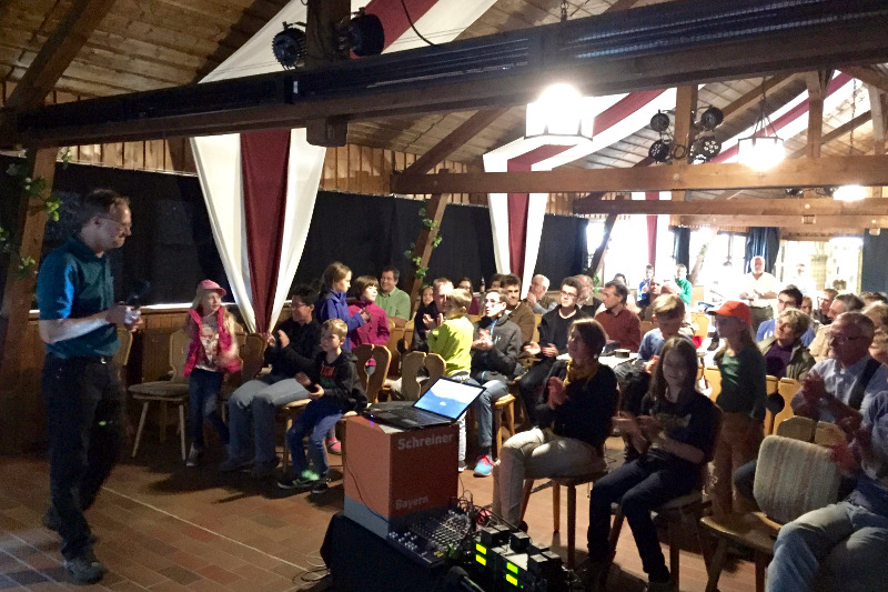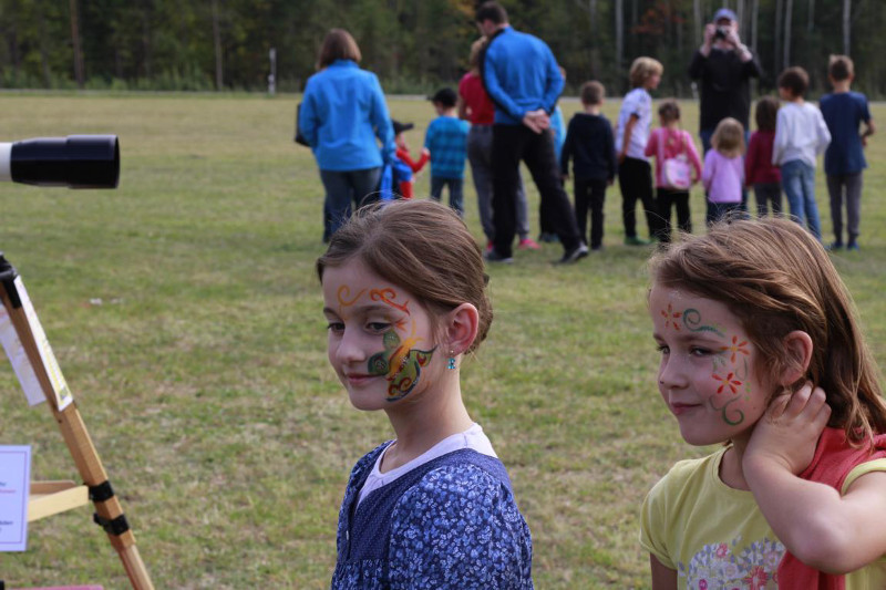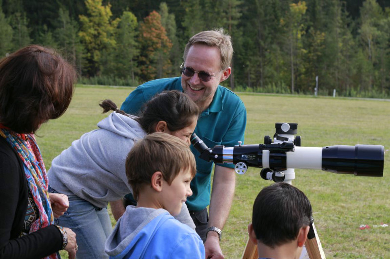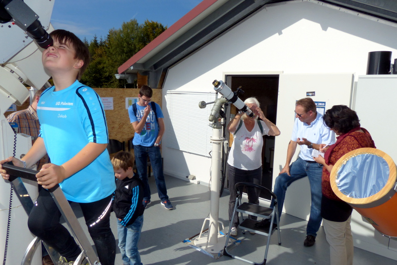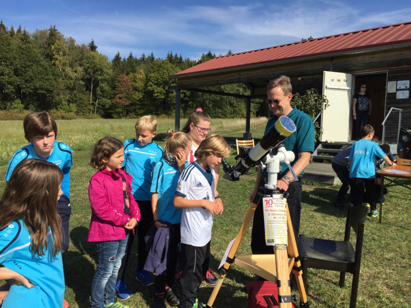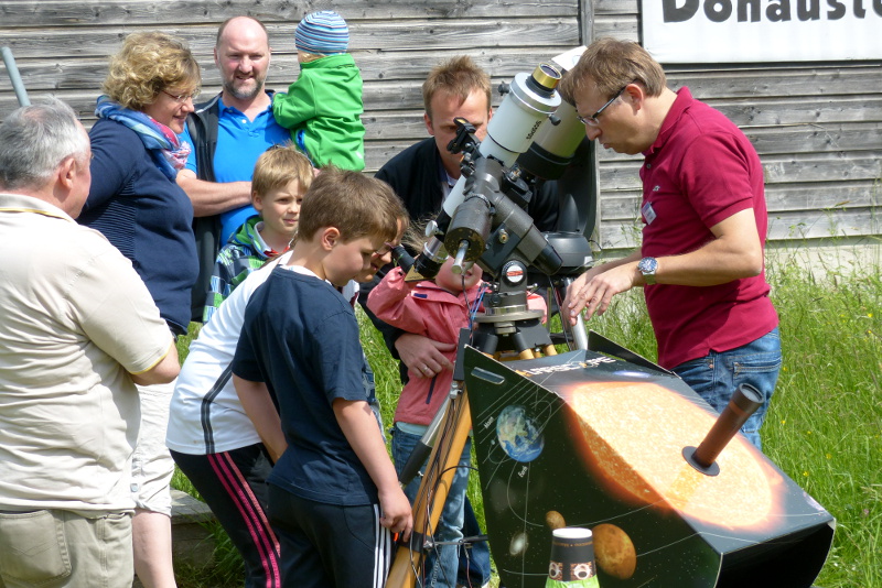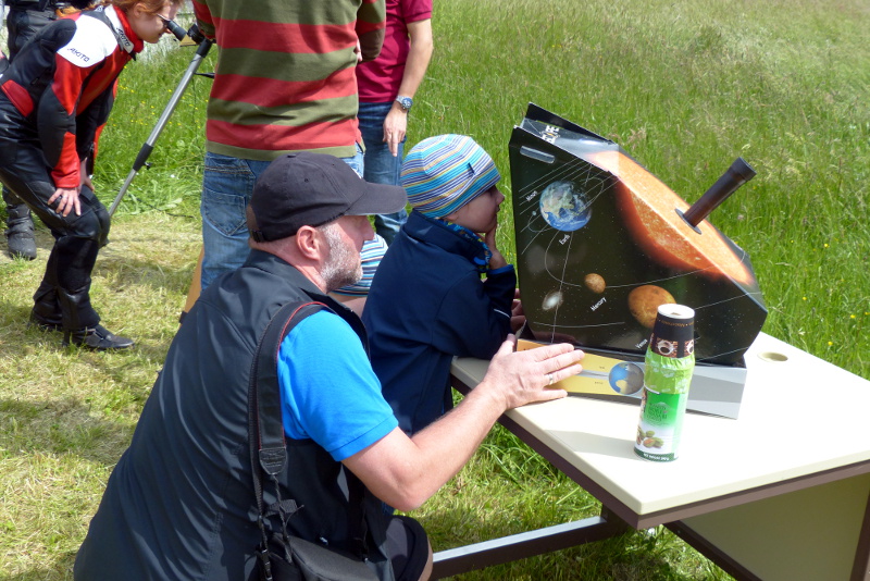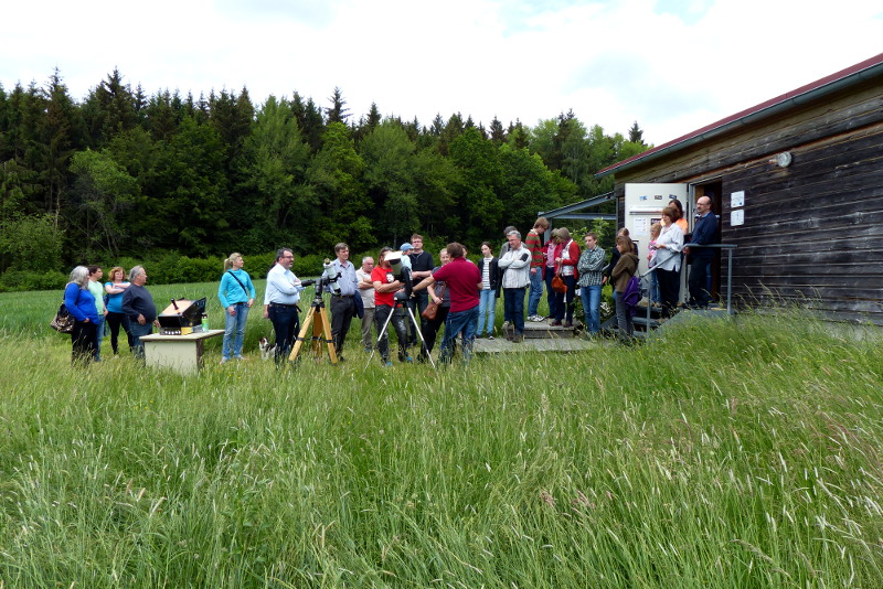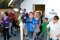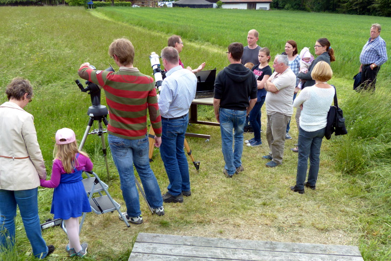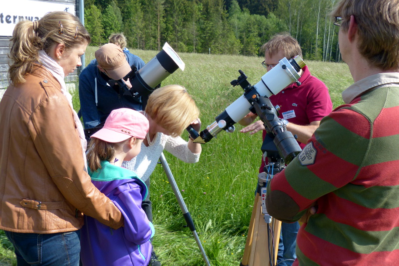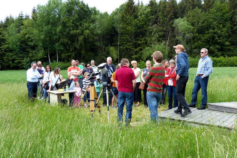 Die Sternfreunde hatten zwar auf viele Besucher gehofft, dass das Programm aber so gut angenommen wurde, damit hatte niemand gerechnet. Den ganzen Tag über kamen vor allem Familien mit ihren Kindern zu den Vorträgen im Saal beim Landgasthof Wäscherhart und den nachfolgenden Aktionen auf der Wiese vor der Sternwarte. Auch am Abend während der Sternführung gab es nur fröhliche Gesichter und begeisterte Menschen.