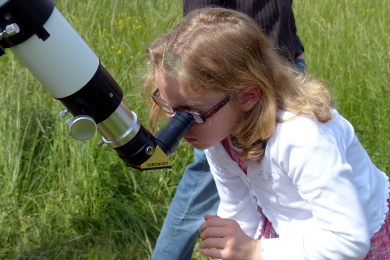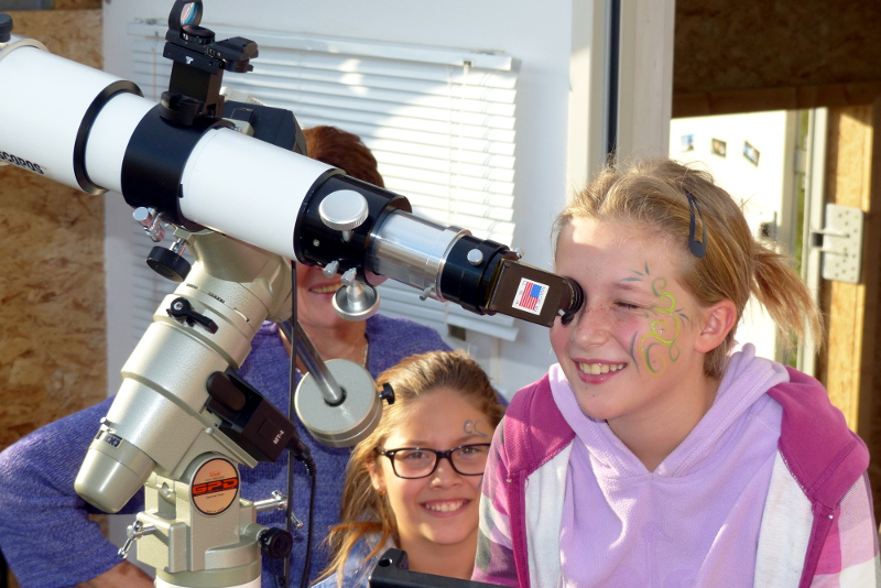 Mehr als 100 kleine und große Besucher kamen im Laufe des Nachmittags zur Sternwarte um die Sonne in verschiedenen Spektern des Lichts zu bewundern.