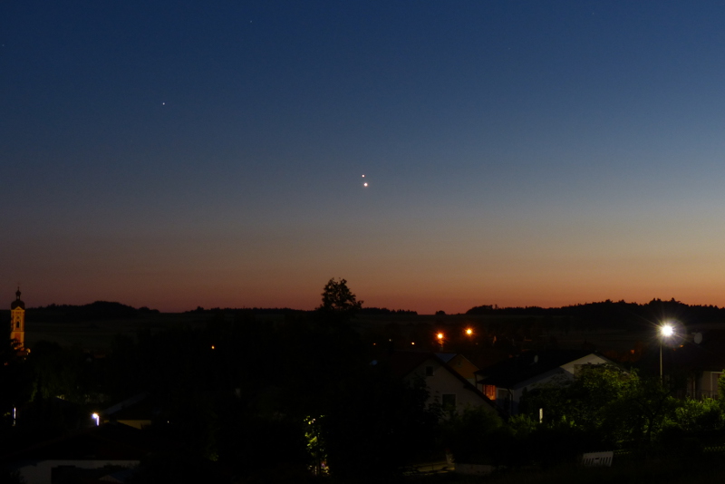 Am Abend des 30. Juni 2015 gegen 22 Uhr waren die beiden hellsten Planeten, Venus und Jupiter, am Westhimmel nur 1,4 Grad nebeneinander zu beobachten.