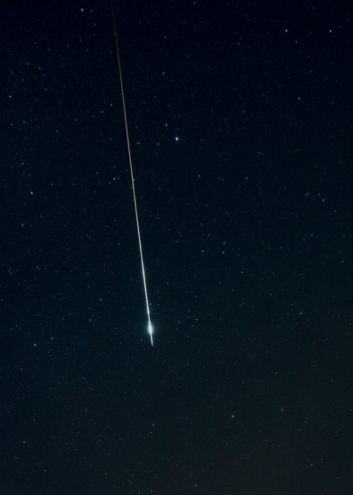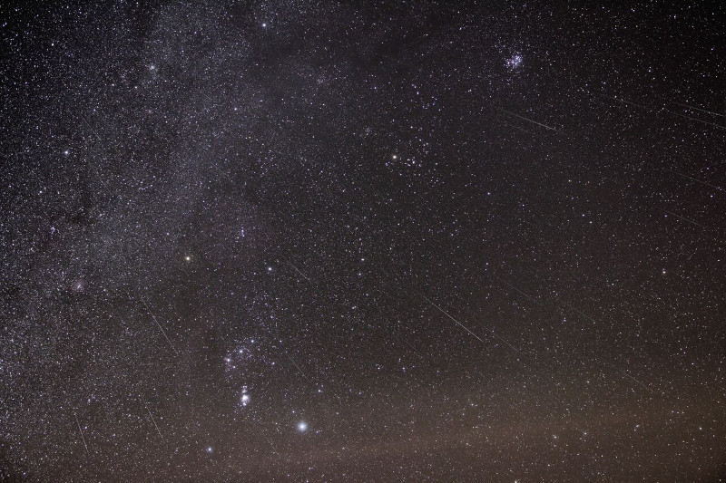 Aus insgesamt fast 500 Einzelaufnahmen mit jeweils 15s Belichtungszeit unter sehr klarem und dunklem Himmel entstand ein beeindruckendes Komposit mit mehr als 30 Meteoren. Zählen Sie ruhig nach!
