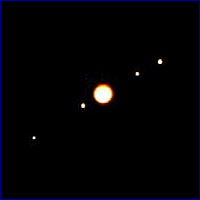 ![]() Jupiter bei 10-facher Vergrößerung v.l.n.r. Kallisto, Europa, Io und Ganymed |