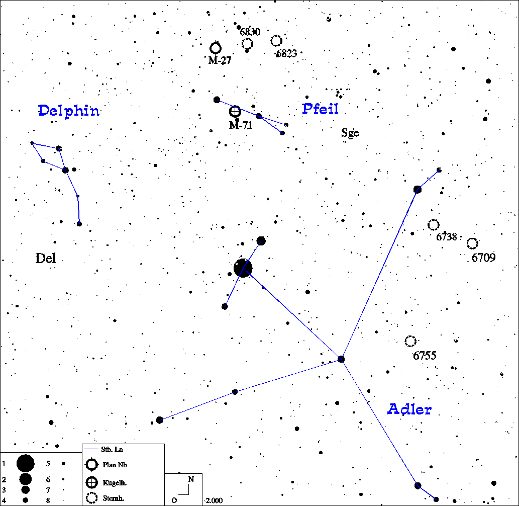 Sternbilder Adler, Pfeil und Delphin